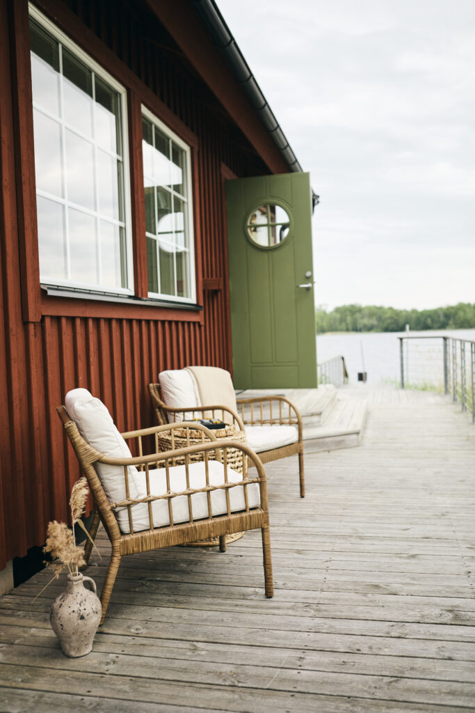 Hotellrummet i Fredrikas Brygghus ligger i en egen byggnad precis nere vid sjön, nära för dig som vill ta dig ett morgondopp och en kaffe i soluppgången.