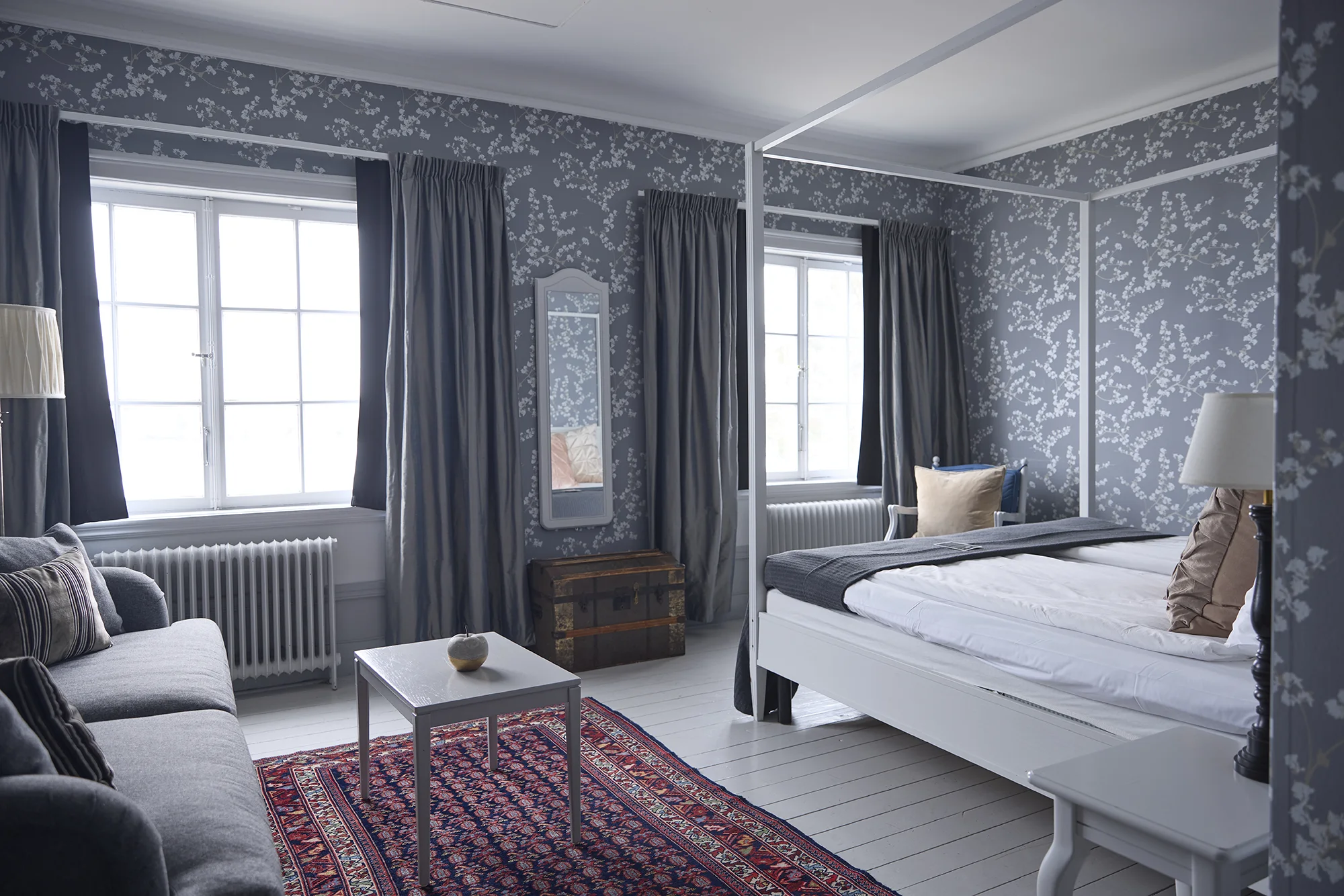 Tre av våra dubbelrum mot sjön är lite större och har, förutom en dubbelsäng, även en soffa som kan bäddas upp för två personer. WC, dusch och wifi samt vattenkokare finns på rummet.