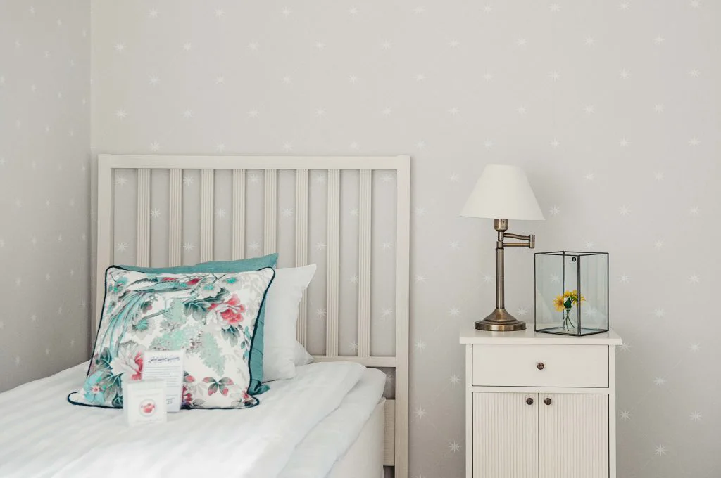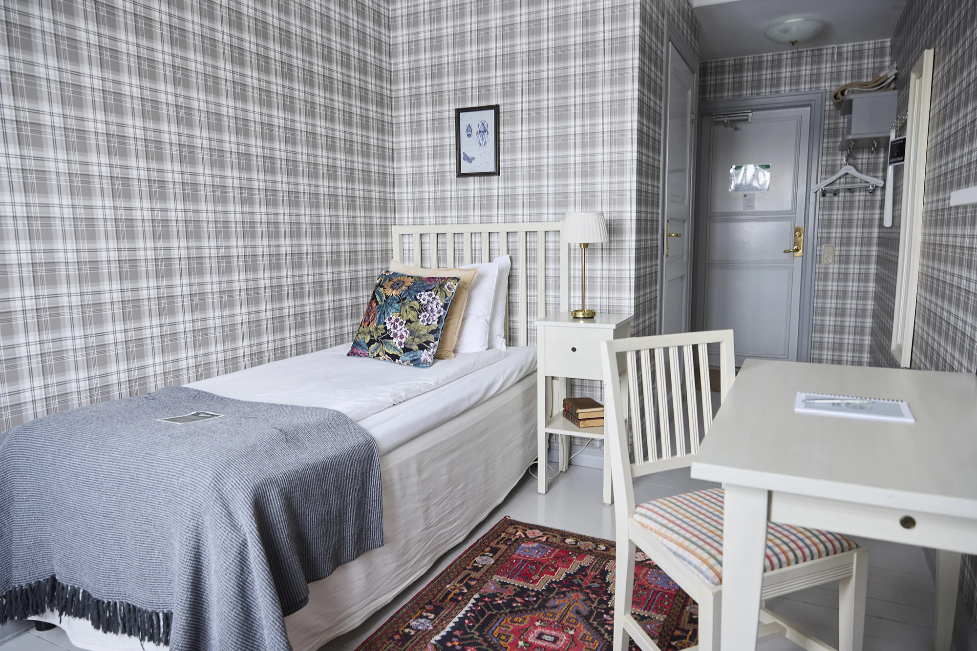 Rum för en person med 90 -100 cm säng och eget badrum med dusch, WC. Välj att bo i huvudbyggnaden med utsikt mot trädgård eller sjö alternativt i gårdshuset Gammelgården. Frukostbuffé och morgonbastu ingår.