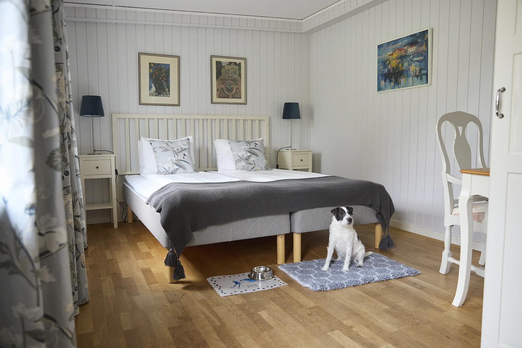 Alla våra hotellrum har trägolv, dusch/WC och wifi. TV är något vi inte har, eftersom vår filosofi är att du ska umgås när du är hos oss. Dock finns det ett TV-rum i huvudbyggnaden om du inte vill missa favoritserien eller den spännande VM-matchen. I huvudbyggnaden finns det även sällskapsspel att låna och fri tillgång till kaffe/te under vistelsen.